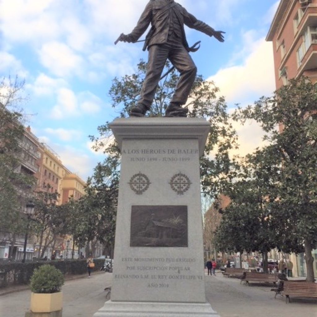 Este mes se ha inaugurado en Madrid, en la plaza del Conde del Valle Suchil, el monumento a los héroes de Baler, obra del escultor Salvador Amaya. Se conmemora el 120 aniversario del sitio de Baler, donde soldados españoles resistieron, durante casi un año, el asedio de los insurrectos filipinos, hasta que fueron convencidos de que la guerra había acabado tiempo atrás. En definitiva, un monumento que rinde homenaje a los soldados que estuvieron dispuestos a defender a España hasta la ultima gota de su sangre. Así que me he acercado a verlo, pues el motivo sin duda lo merece. —————oo0oo————— This month, the monument to the “Heroes of Baler”, the work of the sculptor Salvador Amaya, has been inaugurated in Madrid, in the Plaza del Conde del Valle Suchil. It commemorates the 120th anniversary of the Baler siege, where a bunch of Spanish soldiers resisted for almost a year till they were convinced that the war was really over. In short, a monument that pays tribute to the soldiers commited to defended Spain with their own lives. So I went to see it, since the reason with no doubt deserves it.