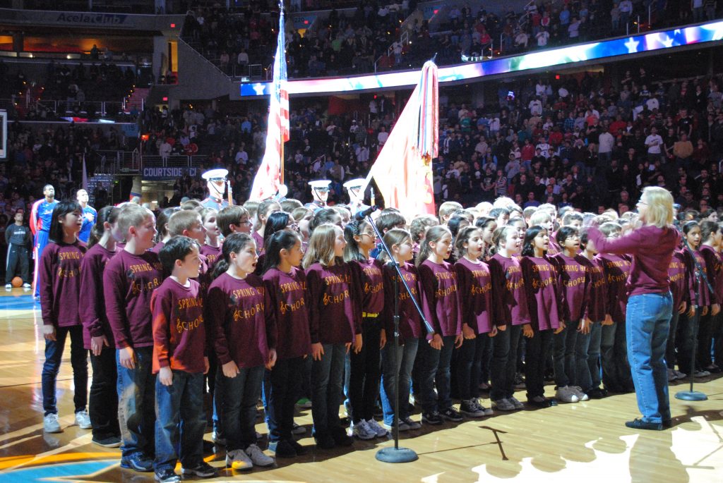 Oye, pues que este mes me ha venido varias veces a la memoria el dia en que el coro del cole de mi hija, donde ella cantaba, fue elegido para cantar el himno nacional en un partido de baloncesto. De esto hace ya unos nueve años. Las luces apagadas. En el centro de la cancha, la profesora de musica dirigiendo el coro, todos los niños cantando el himno, que se sabian perfectamente, el publico en pie en señal de respeto, los jugadores en la misma posicion y un piquete militar portando la bandera nacional. Y el padre de esa niña, que soy yo, sacando las fotos para el cole, pues pidieron un voluntario para hacerlo y me dije; ¿Porque no?. El momento no pudo ser mas emocionante… Si, mi hija es tan española como yo pero, desgraciadamente, esta historia es imposible en la España que vivimos. ¡Anda, pero es que entonces no viviamos en España! Se trataba de un cole americano en Virginia, durante el primer mandato de Barack Obama. En un lugar donde se les enseña a los niños a querer a su pais y a la bandera que lo representa. Donde pueden llegar a cantar su himno en un partido de la mismisima NBA, como era el caso. Un pais donde todo el publico (independientemente de sus ideas) y los jugadores mostraban un respeto infinito hacia sus propias señas de identidad. Ese se ha convertido sin duda uno de los momentos de mi vida. Y lo he tenido que vivir en otro pais, pues en el mio esa es una imagen impensable. Y eso que España tiene una historia de la que no puede presumir ningun otro pais y de la que podemos estar tremendamente orgullosos. Bueno, pues ahi teneis la imagen que prueba todo lo que os cuento. Ya siento ser solo un fotografo aficionado… —————oo0oo————— Well, this month it has come to mind several times, the day my daughter’s school choir, where she sang, was chosen to sing the national anthem at a basketball game. This was about nine years ago. Lights off. In the center of the court, the music teacher leading the choir, all the children singing the anthem, that they knew perfectly, the audience standing as a sign of respect, the players in the same position and the color guard present. And the father of that girl, which is me, taking photos for the school, since a photographer was required and I volunteered. The moment could not be more thrilling … Yes, my daughter is as Spanish as I am, but this story is impossible to see in the Spain we live in. I remember now, we didn’t live in Spain at that time! It was an American school, during the first term of Barack Obama. In a country where children are taught to love their country and its symbols. Where boys can sing their national anthem in an NBA game, as was the case. A country where all the public (regardless of their ideas) as well as the players showed infinite respect for their own identity.